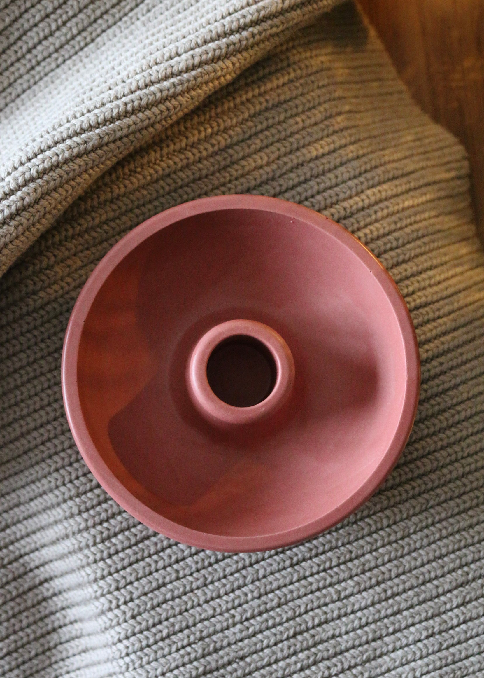 Feito à mão em jesmonite, um material resistente e de acabamento mate, o Disco combina durabilidade e leveza. Nesta edição festiva, chega nas cores verde escuro e vermelho natal, perfeitas para adicionar cor e calor a mesas, aparadores ou prateleiras.