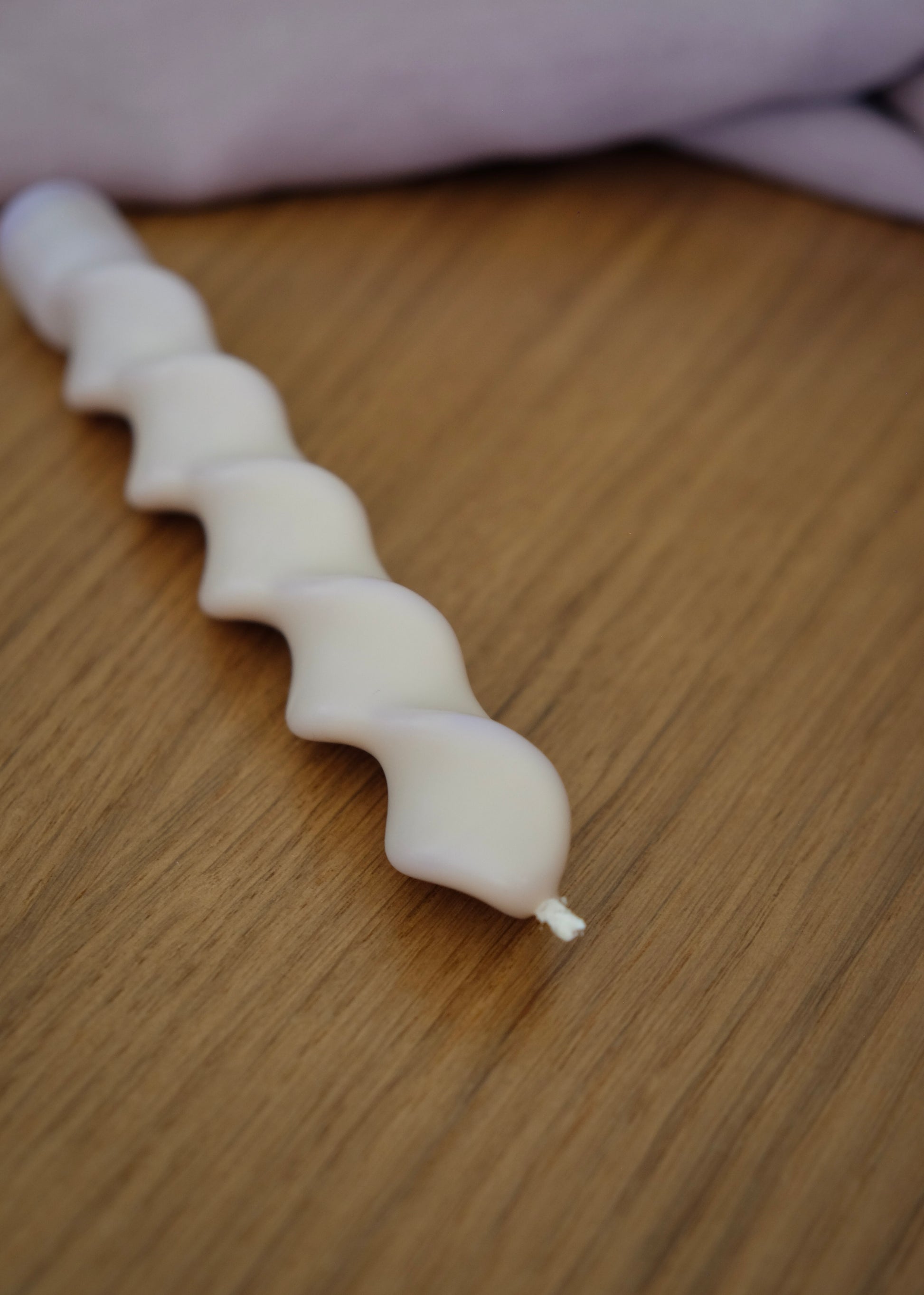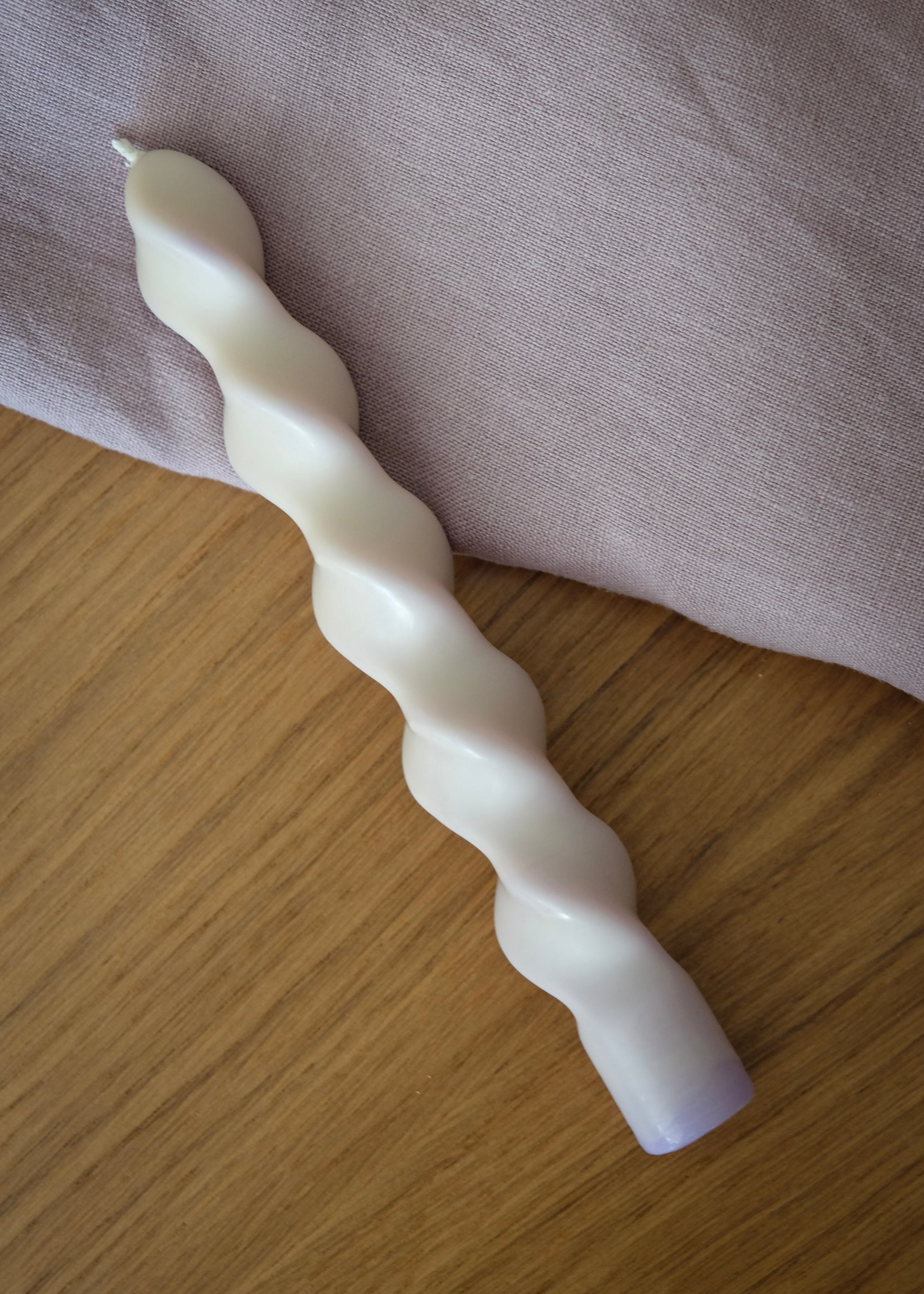 Vela Movimento no tom baunilha por fora e quando acesa, revela a cor lilás que está por dentro, seu formato ondulado deixa qualquer cantinho com cara de revista.
